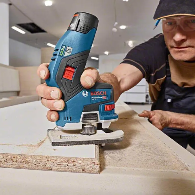 Bosch GKF 12V-8 on maailman ensimmäinen ammattimainen 12 V:n reunajyrsin – ainutlaatuinen muotoilu täydelliseen hallintaan. Innovatiivinen muoto, kevyt paino ja ihanteellinen tasapainopiste mahdollistavat miellyttävän, ergonomisen käsiteltävyyden. Johdottomuus takaa maksimaalisen käsiteltävyyden, käyttömukavuuden ja työskentelyvapauden jyrsittäessä. Tämä työkalu on tarkoitettu puun ja muovin reunajyrsintään. Se on yhteensopiva kaikkien Bosch Professional 12 V:n akkujen ja latauslaitteiden kanssa (Professional 12V System). GKF 12V-8 Professional -reunajyrsimen toimintoja ovat nopea makrosyvyydensäätö, hienosäätö, lukittava leikkaussyvyys ja karalukitus.