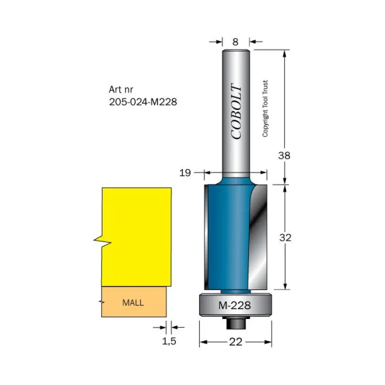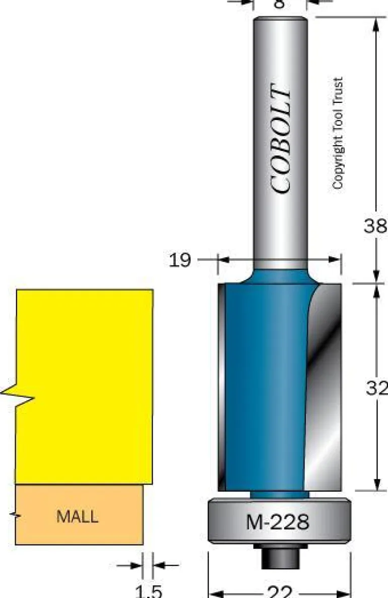 Cobolt-reunajyrsin, jossa on suuremmat kuulalaakerit karkeaa profilointia varten D=19 L=32
