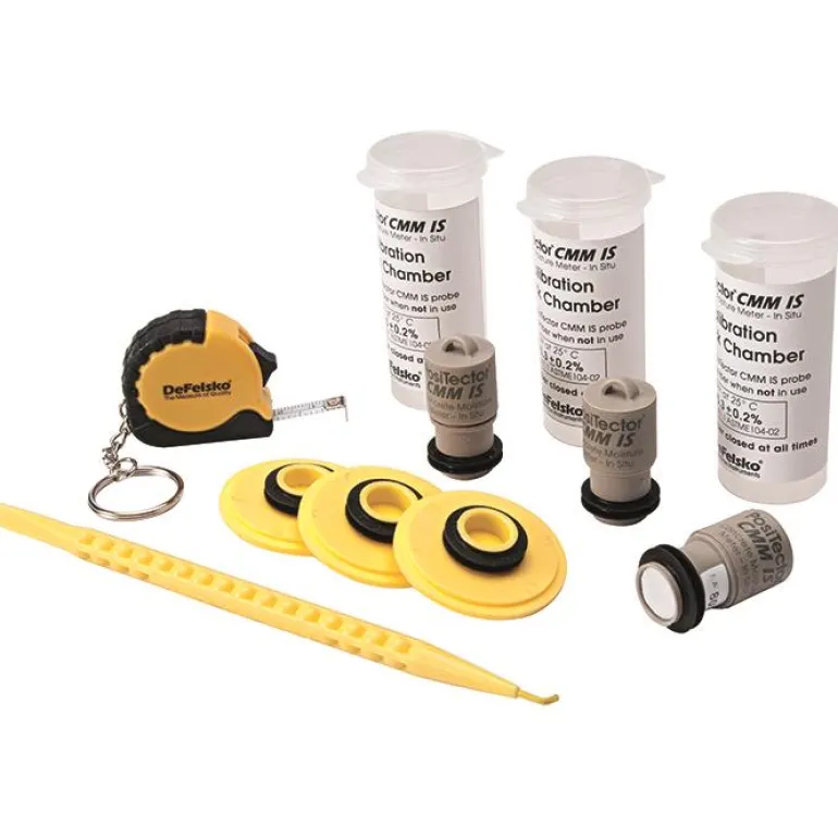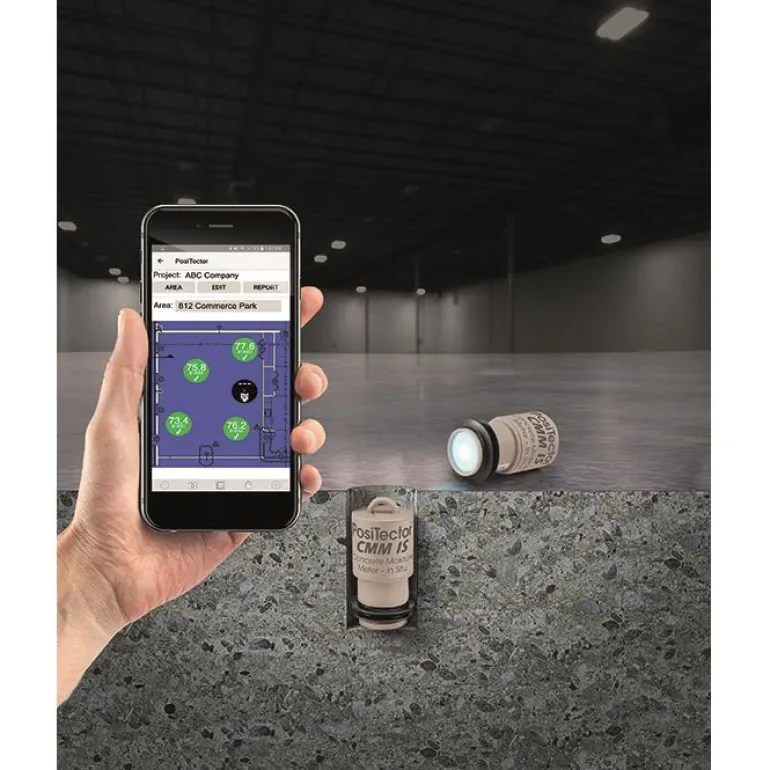 DeFelsko PosiTector CMM IS Basic Kit -pakkaus sisältää langattomat RH-anturit betonin kosteusmittaukseen. Erinomainen betonilaattojen suhteellisen kosteuden ja lämpötilan mittaamiseen. PosiTector CMM IS -RH-anturi käyttää langatonta Bluetooth-yhteyttä ja mobiilisovellusta (iOS/Android) tai PosiTector DPM:ää.