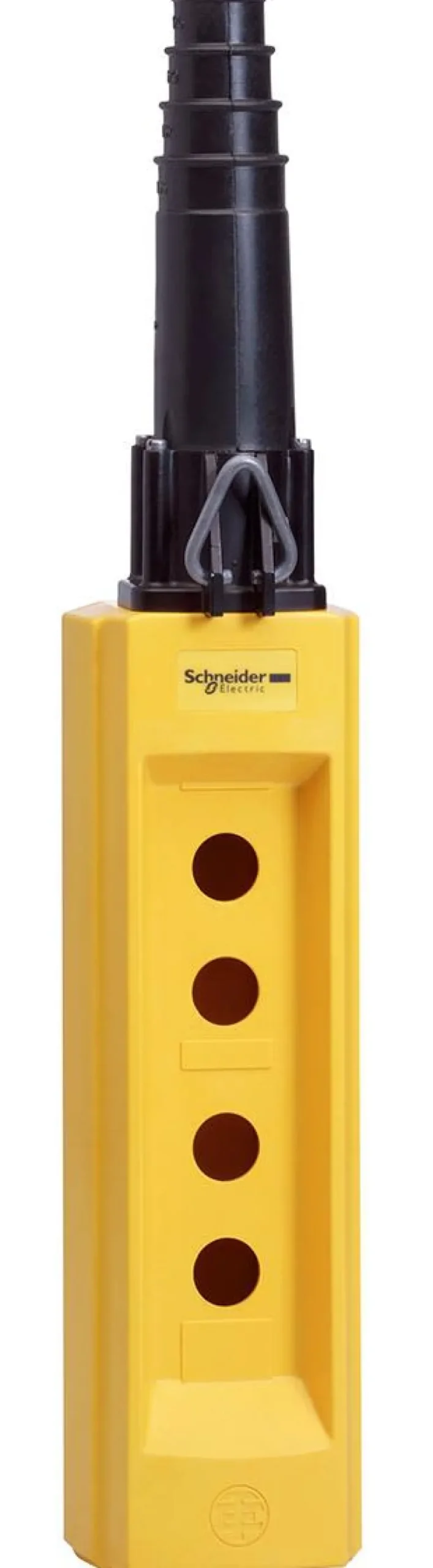 XACB041 on lasivahvisteisesta polyesteristä valmistettu riippuohjain, joka on väriltään kirkkaankeltainen, mikä takaa hyvän näkyvyyden. Siinä on sähköinen ohjauspiiri ja virtapiiri sekä kaapelin sisääntulo, johon sopii 10-22 mm kaapeli.