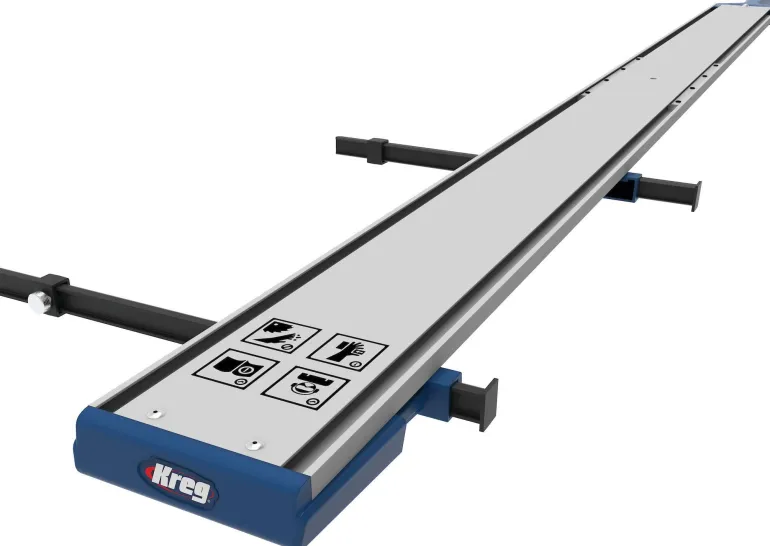 Leikkaa levyt tarkasti ja kevyesti Kreg Straight Edge Guide:n avulla. Työskentele jopa 122 mm materiaalien kanssa pyörösahalla, pistosahalla tai jyrsimellä.