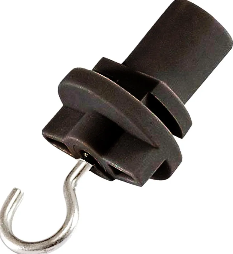 Valkoinen ripustuskannake koukulla asennettavaksi 3-vaiheiseen kiskoon.