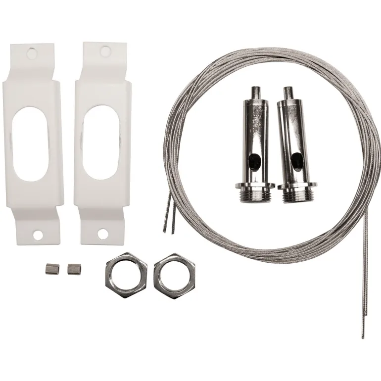 Ripustusvaijeri 2×2 m EcoLine-valaisimelle, jossa suora valon jakautuminen.