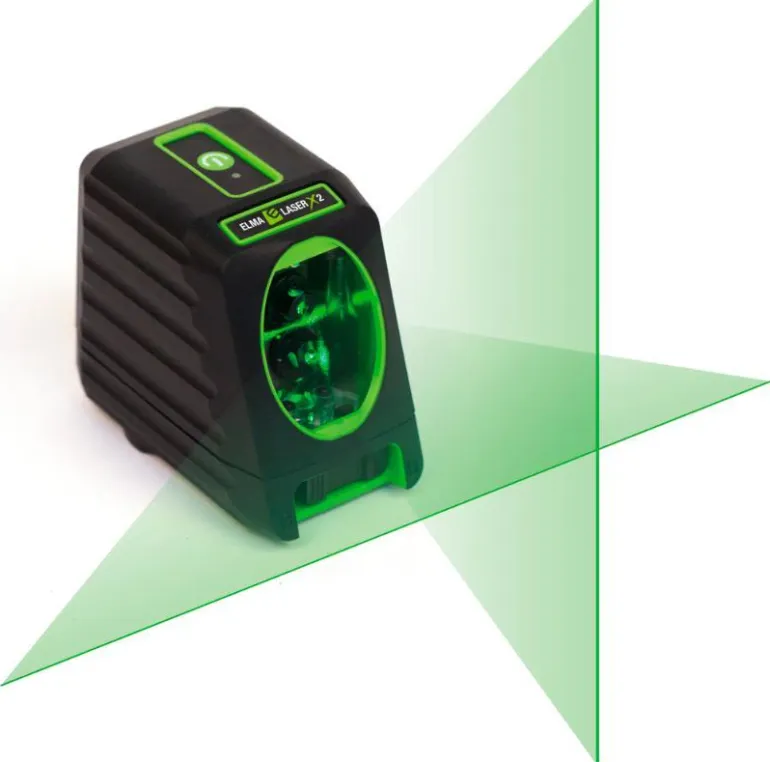 Se on itsevaaittava. Jos poikkeama on liian suuri itsevaaitukseen, laser vilkkuu voimakkaasti virheiden välttämiseksi. Vaaka- ja pystylinjojen lisäksi voit tehdä myös suoria linjoja vinokulmissa – täydellistä esimerkiksi portaita mitattaessa jne. Lukitustoiminnolla estetään itsevaaitus ja vinokulma voidaan asettaa helposti esimerkiksi asettamalla instrumentti vakiomalliseen kameratelineeseen tai mukana tulevaan magneettiseen kulmasovittimeen. Kun laite on lukittu, se ilmaistaan lyhyellä välähdyksellä noin 3 sekunnin välein, jotta et luule viivojen olevan pysty- ja vaakasuorassa vian sattuessa. Lisäturvallisuuden vuoksi Elma Laser x2:ta ei voi kytkeä pois päältä, kun kuljetuskiinnike irrotetaan. Tämä suojaa laitteen sisäpuolta kuljetusvaurioilta, jotka ovat muutoin yleisin vika linjalasereissa.