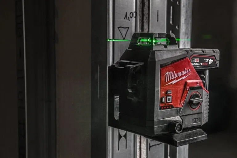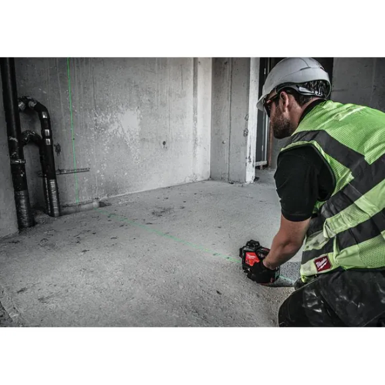 Milwaukee M12 3PL-0C 3-tasolaser (360°) on all-in-one ratkaisu, jossa on yksi vaaka- ja kaksi pystysuoraa viivaa sujuvaa vaaitusta, suorakulmamerkintöjä ja siirtoja varten. M12 3PL-0C: ssä on korkean intensiteetin vihreä laser, jonka kantama on 38/50 m vastaanottimella tai ilman sitä ja joka toimii kokonaisen työpäivän, yli 15 tuntia M12 4,0 Ah -akulla.