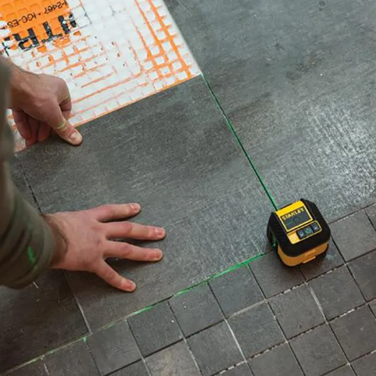 Ristilaser, jonka kantama on 16 metriä. Tarkkuus +/- 5mm @ 10 m. Vihreä lasersäde tarjoaa suuremman työskentelyalueen ja paremman näkyvyyden. Voidaan kääntää selällään, jolloin laser heijastuu kattoon.