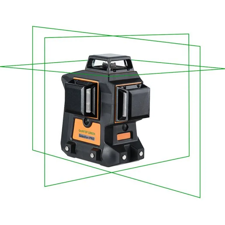 Geo Fennel GEO6X SP on kestävä ja selkeä ristilaser kolmella 360° laserlinjalla, jotka muodostavat 6 laserristiä linjojen kohdatessa 90° seinää, kattoa ja lattiaa vasten. Laserin toimintasäde on 80m, tai jopa 140 m laservastaanottimen kanssa (Geo Fennel FR-MM, ei sisälly pakettiin). Itsevaaitusalue jopa 3°. Tukeva ja kompakti ristilaser, jossa on kumipäällystetty rakenne ja kulutusta kestävät suojat. Laser toimitetaan kestävässä laukussa. Mukana toimitetaan myös säädettävä pidike, magneetit kiinnitystä varten, ladattava akku ja adapteri alkaliparistoille.