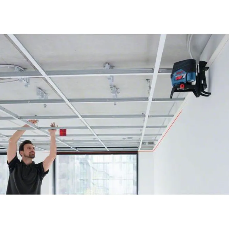 Bosch GCL 2-50 C on ristilaser, jonka pysty- ja vaakasuuntaiset laserlinjat ja kaksi keskitettyä luotipistettä takaavat ihanteellisen näkyvyyden. Kantama on jopa 20 m ja pistesäteen tasaustarkkuus ± 0,3 mm/m.