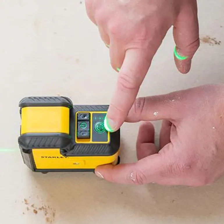 Tarkkuus +/- 4mm @10 M. Heijastaa 1 x 360° vaakasuoran viivan ja yhden pystysuoran viivan. Vihreä lasersäde tarjoaa suuremman työskentelyalueen ja paremman näkyvyyden. Itsetasaava +/-4°. IP50, pölynkestävä. Lukittava heiluri turvallista kuljetusta varten.