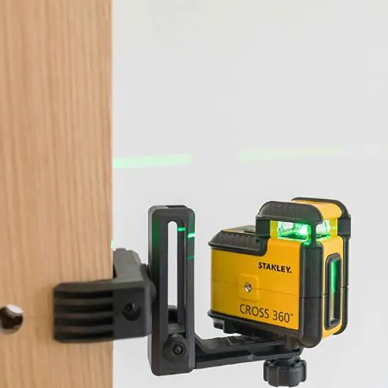 Ristilaserpaketti, tarkkuus +/- 4mm @10 M. Heijastaa 1 x 360° vaakasuoran viivan ja yhden pystysuoran viivan. Vihreä lasersäde tarjoaa suuremman työskentelyalueen ja paremman näkyvyyden. Itsetasaava +/-4°. IP50, pölynkestävä. Lukittava heiluri turvallista kuljetusta varten.