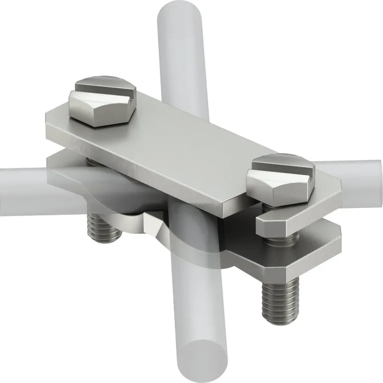 Ristiliitin 1.4301 ruostumatonta terästä, sopii 8-10 mm johdinten/50mm lattajohdinten liittämiseen 6-22 mm raudoitusteräkseen.