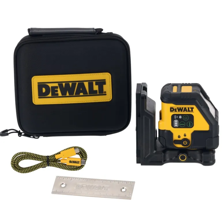 Dewalt USB -ristilinjalaser vihreällä lasersäteellä, jossa on sisäänrakennettu ladattava litiumioniakku POWERSTACK-teknologialla. Käyttöaika jopa 11 h, ja se latautuu USB-C-kaapelilla 80 %:iin 30 minuutissa. Laseria voidaan käyttää myös latauksen aikana. Vihreä, erittäin hyvin näkyvä lasersäde takaa paremman näkyvyyden työmaalla. Kantama on 45 m ja jopa 100 m ilmaisimen kanssa. Tarkkuus on ±3 mm / 10 m, mikä tarjoaa ammattitason tarkkuuden työskentelyyn.