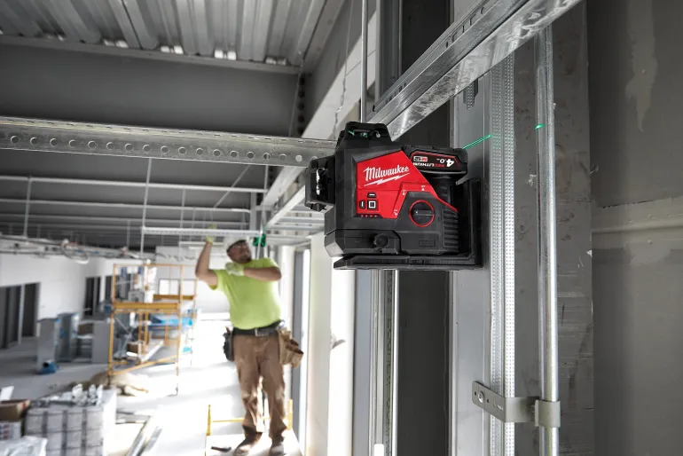 Integroitu asennusteline vahvoilla maametallimagneeteilla, ¼″ ja ⅝″ kolmijalan kierteet ja ripustusreikä mahdollistavat kiinnityksen metalliin, puuhun ja kolmijalkaan. Asennusteline mahdollistaa laserin 330° kääntämisen ja sisältää myös integroidun hienosäätönupin nopeaan linjaamiseen. Kestävä päällyste IP54-suojauksella suojaa laseria vedeltä ja roskilta sekä kestää pudotuksen jopa metristä. Toimii kaikilla Milwaukee M12™ -akuilla.