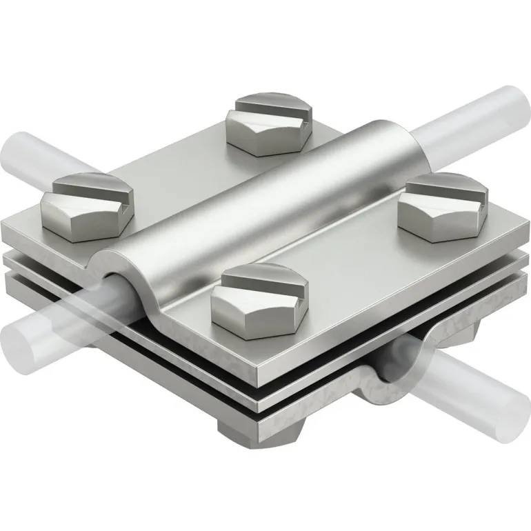 T-, risti- tai rinnakkaisliitäntä, pyöreät johtimet. Kuumasinkittyä terästä. Välilevyllä.