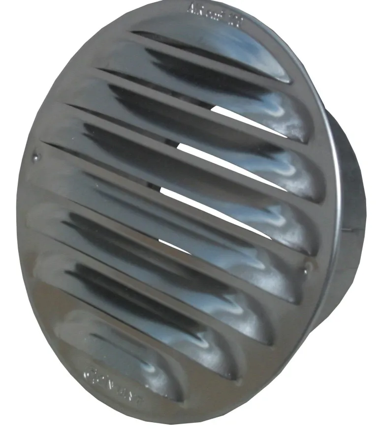 Pyöreä ulkoseinäsäleikkö, joka on valmistettu puristetusta metallilevystä, yhteillä. Yhde on spirodimention-yhteensopiva ja siinä on upotukset turvallista asennusta varten.