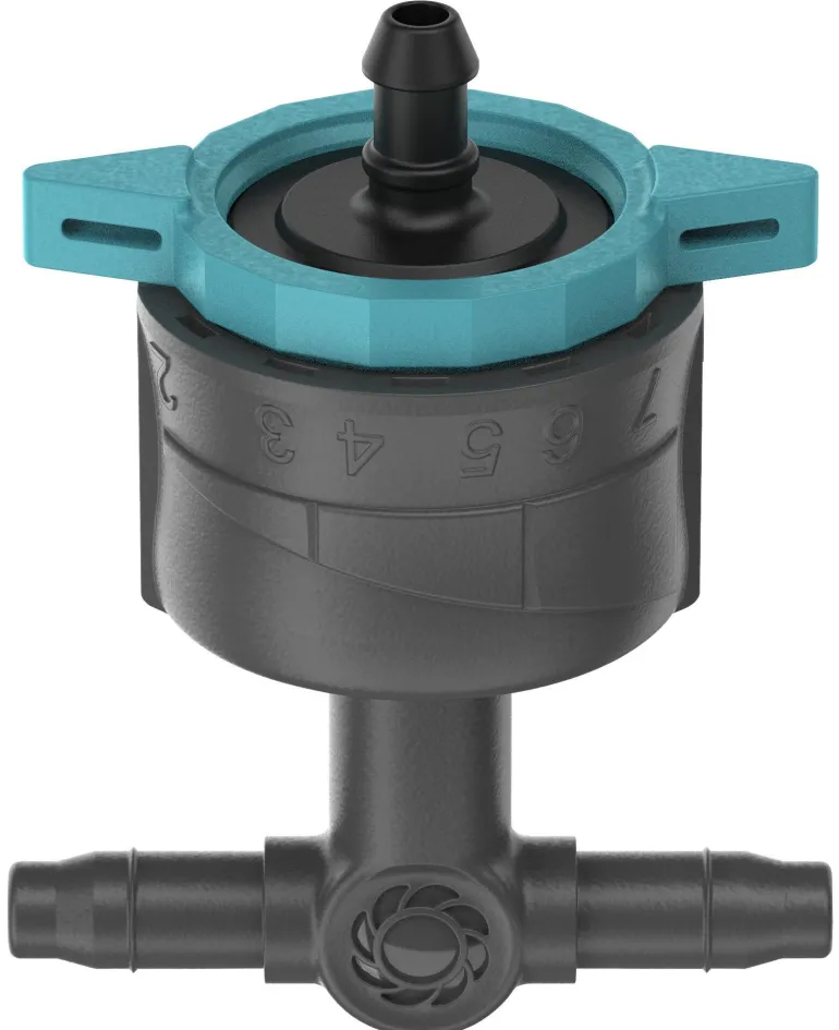 GARDENAn säädettävä ja painetta tasaava rivitippusuutin 1–8 l/h takaa kasvien luotettavan kastelun esimerkiksi kasvatuslaatikoissa ja kasviriveillä. Micro-Drip-tippukastelusarjaan kuuluva suutin liitetään 4,6 mm:n haaroitusputkeen. Veden määrä voidaan asettaa yksilöllisesti välille 1-8 litraa tunnissa.