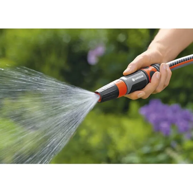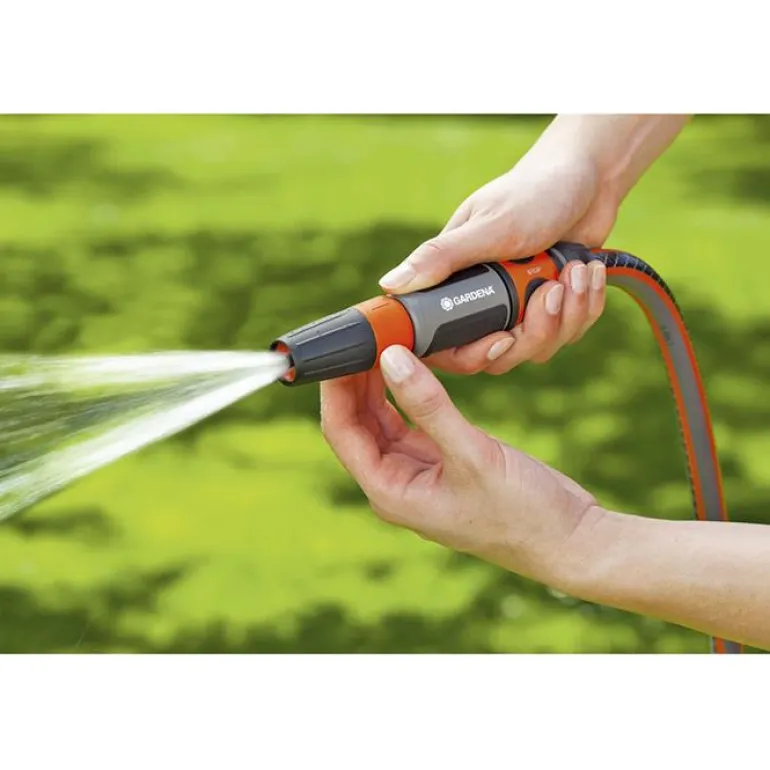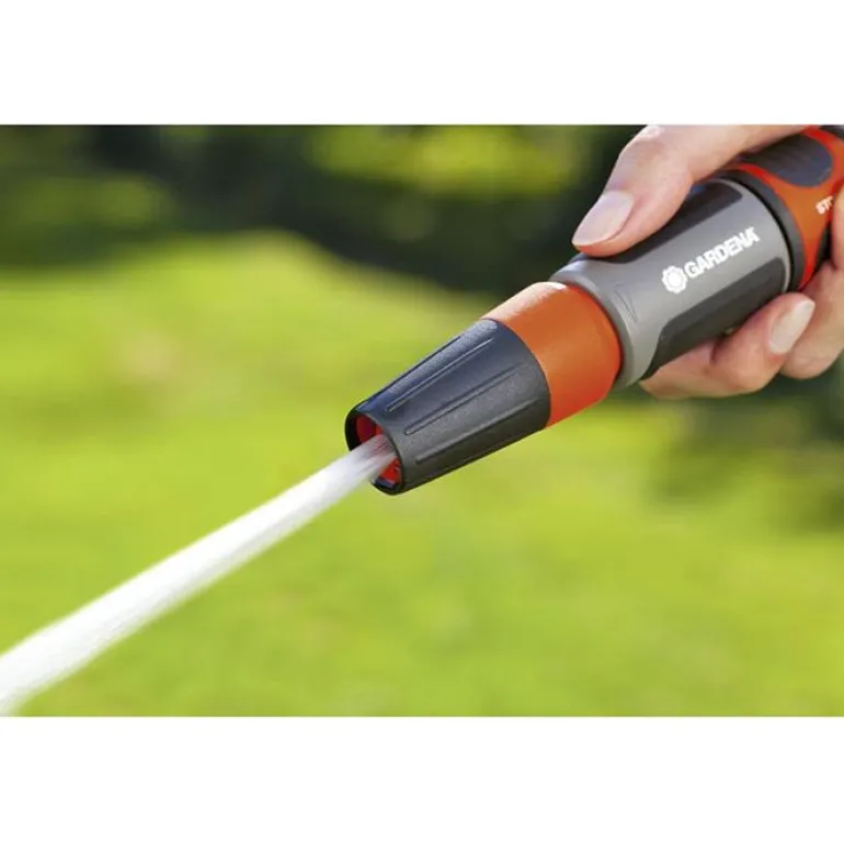 Gardena 18300 on ruiskusuutin pesuun tai kasteluun, sisäänrakennettu jäätymissuoja. Ihanteellinen sekä pinttyneen lian puhdistamiseen että kasteluun hienolla sumutuksella. Suihkutusmallia voi säätää portaattomasti. Voit valita suihkutusmallin käyttökohteen mukaan. Suuttimen holkki ei irtoa, joten se ei voi myöskään kadota. Muovipehmusteen ansiosta suutin istuu hyvin ja lipsumatta käteen.