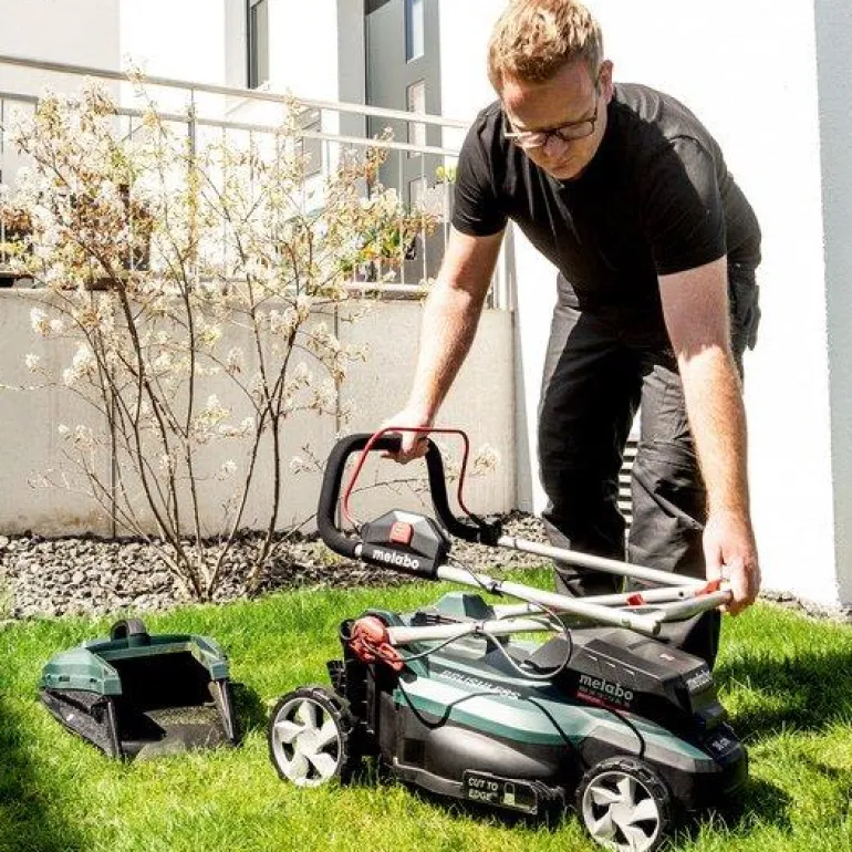 Metabo RM 36-18 LTX BL 36 on kompakti ja käytännöllinen 18 V-akkuruohonleikkuri, joka sopii reunojen lähellä leikkaamiseen ja bioleikkaamiseen. Soveltuva enintään 350 m²:n kokoisille nurmialueille. RM 36-18 LTX BL 36 on varustettu tehokkaalla hiiliharjattomalla moottorilla, joka antaa erinomaisen leikkuutehon ja pitkän käyttöajan per latauskerta. Ruohonleikkurissa on korkealaatuinen terä ja keskitetty, 5-portaisesti säädettävä leikkuukorkeus. Integroidut ruohokammat helpottavat leikkaamista reunojen läheisyydessä. Työntöaisan korkeus on säädettävissä ja sen otepinta on kumipinnoitettu ergonomista työskentelyä varten.