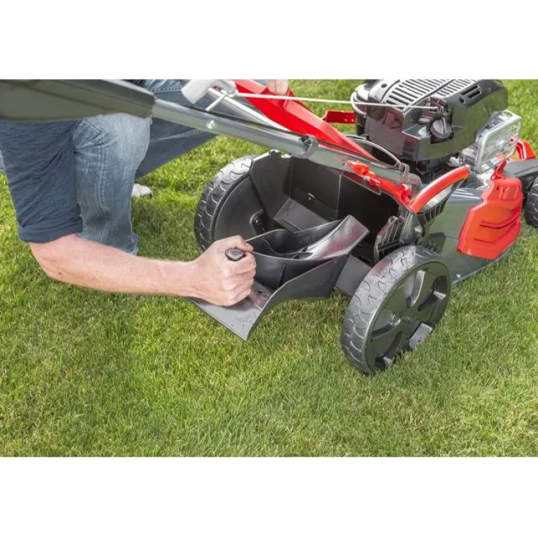 Koska leikkuri on itsevetävä (1 vaihde), työ puutarhassa sujuu vaivattomasti. 4INONE-toiminnon ansiosta ruohonleikkuri voi leikata, kerätä ruohoa ja biosilputa, lisäksi siinä on mahdollisuus myös sivulle heittämiseen. Ergonominen kahva lisää käyttömukavuutta. Leikattu ruoho kulkee erityisen korkean teräskotelon läpi 60 litran keräimeen, joka täyttyy reunoihin asti eikä sitä sen vuoksi tarvitse tyhjentää kovin usein.