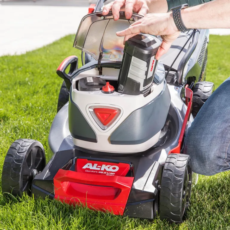 Takaveto, leikkuukorkeuden keskitetty korkeudensäätö 7-portaisesti ja miellyttävä kädensija helpottavat työskentelyä. Ruohonleikkurin voi helposti liittää AL-KO InTouch ‑sovellukseen AL-KO Smart-Connectilla, jolloin saat kattavat tiedot muun muassa akun tilasta, leikkuunopeudesta ja viimeisimmästä leikkuukerrasta. 46.2 Li SP-W:ssä on tukeva jauhemaalatusta metallista valmistettu moottorikotelo, joka on kehitetty hyödyntämään AL-KO:n Max Airflow ‑teknologiaa. Tämä tarkoittaa, että kotelo on erityisen korkea ja suunniteltu niin, että ruoho leikkautuu mahdollisimman pienijakoiseksi ja keruusäiliö täyttyy mahdollisimman tehokkaasti. Kotelon muotoilu on erityisen edullinen bioleikkuussa, koska siihen mahtuu paljon ruohoa, mikä tarkoittaa, että moottori ei hidastu korkeassa ja kosteassa ruohikossa.