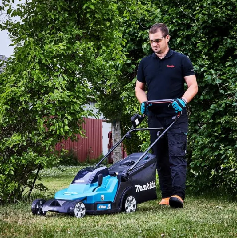 Bioleikkaava ja keräävä ruohonleikkuri. Keskitetty leikkuukorkeuden säätö ja kuulalaakeroidut pyörät sekä portaaton nopeuden säätö. Leikkuuleveys 43 cm, paino vain 17,5 kg. Mukana kaksi 5.0 Ah akkua ja kaksoislatauslaite.