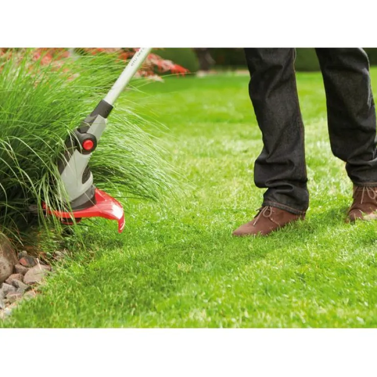 AL-KO GTE 550 Premium on 550W:n ruohotrimmeri, leikkuuleveys 30 cm. Turvakaaren ansiosta voit trimmata pensaiden alta ja seinien sekä muurien vierestä vahingoittamatta mitään. Leikkuupään kolmiasentoisen kallistussäädön ansiosta pääset helposti hankaliin paikkoihin.