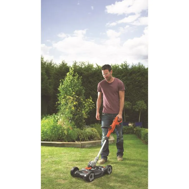 Black & Decker STC1820CM-QW on näppärä 18 V ruohotrimmeri, jonka leikkuuleveys on 28 cm ja leikkuunopeus 5500-7400 kierr./min. Korkean vääntömomentin vaihteistojärjestelmän avulla voit leikata tiheäkasvustoisia alueita sekä pitkää ruohoa. Varustettu reunaohjattavilla pyörillä, joiden ansiosta on helpompi kuin koskaan vaihtaa reunojen trimmaukseen ja saada täydelliset reunat joka kerta. Voit helposti napsauttaa trimmerin pyörille käyttääksesi sitä ruohonleikkurina.
