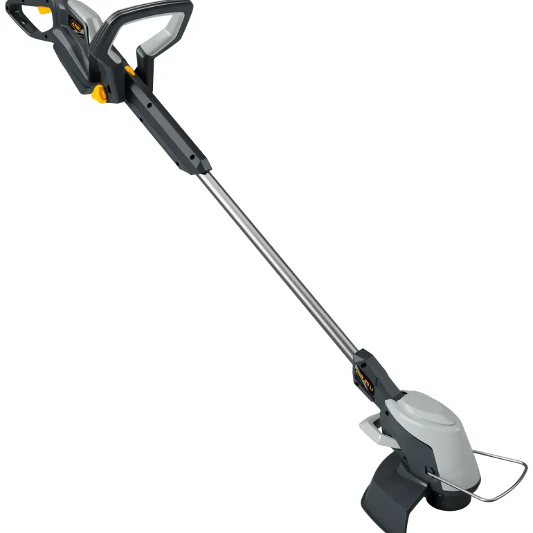 Ruohotrimmeri, joka toimii 20 V litiumioniakulla, paino vain 2,1 kg, varustettu automaattisella yksisiimaisella itsesyöttävällä trimmeripäällä.