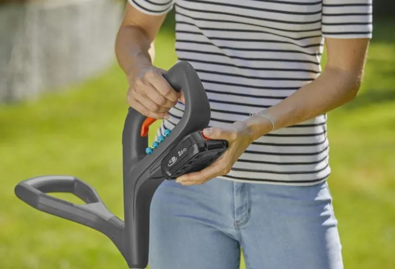 GARDENA SmallCut 23/18V P4A solo -akkutrimmeri toimitetaan ilman laturia ja akkua. Voit käyttää siihen POWER FOR ALLIANCE 18V -akkua. POWER FOR ALL ALLIANCE on yksi suurimmista johtavien valmistajien välisistä akkuliitoista, jonka akkuja voidaan käyttää lukuisissa puutarhan ja kodin laitteissa. GARDENA tarjoaa tuotteelle kolmen vuoden valmistajan takuun, kun tuote on rekisteröity 3 kk:n kuluessa ostosta osoitteessa www.gardena.com/registration.