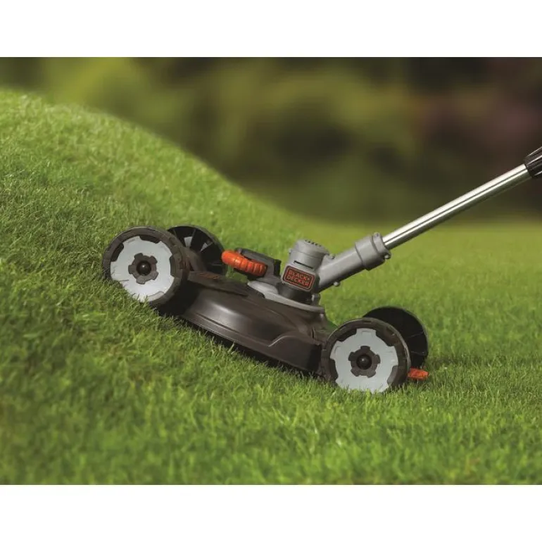 Black & Decker STC1820CM-QW on näppärä 18 V ruohotrimmeri, jonka leikkuuleveys on 28 cm ja leikkuunopeus 5500-7400 kierr./min. Korkean vääntömomentin vaihteistojärjestelmän avulla voit leikata tiheäkasvustoisia alueita sekä pitkää ruohoa. Varustettu reunaohjattavilla pyörillä, joiden ansiosta on helpompi kuin koskaan vaihtaa reunojen trimmaukseen ja saada täydelliset reunat joka kerta. Voit helposti napsauttaa trimmerin pyörille käyttääksesi sitä ruohonleikkurina.