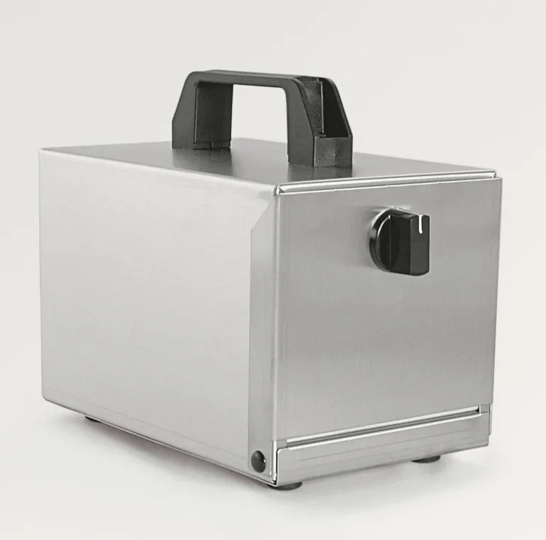 Ruokalaatikon lämmitin, jossa yksi uuni, 50 W, tukeva rakenne, valmistettu kokonaan ruostumattomasta teräslevystä, uunin pohja alumiinia.
