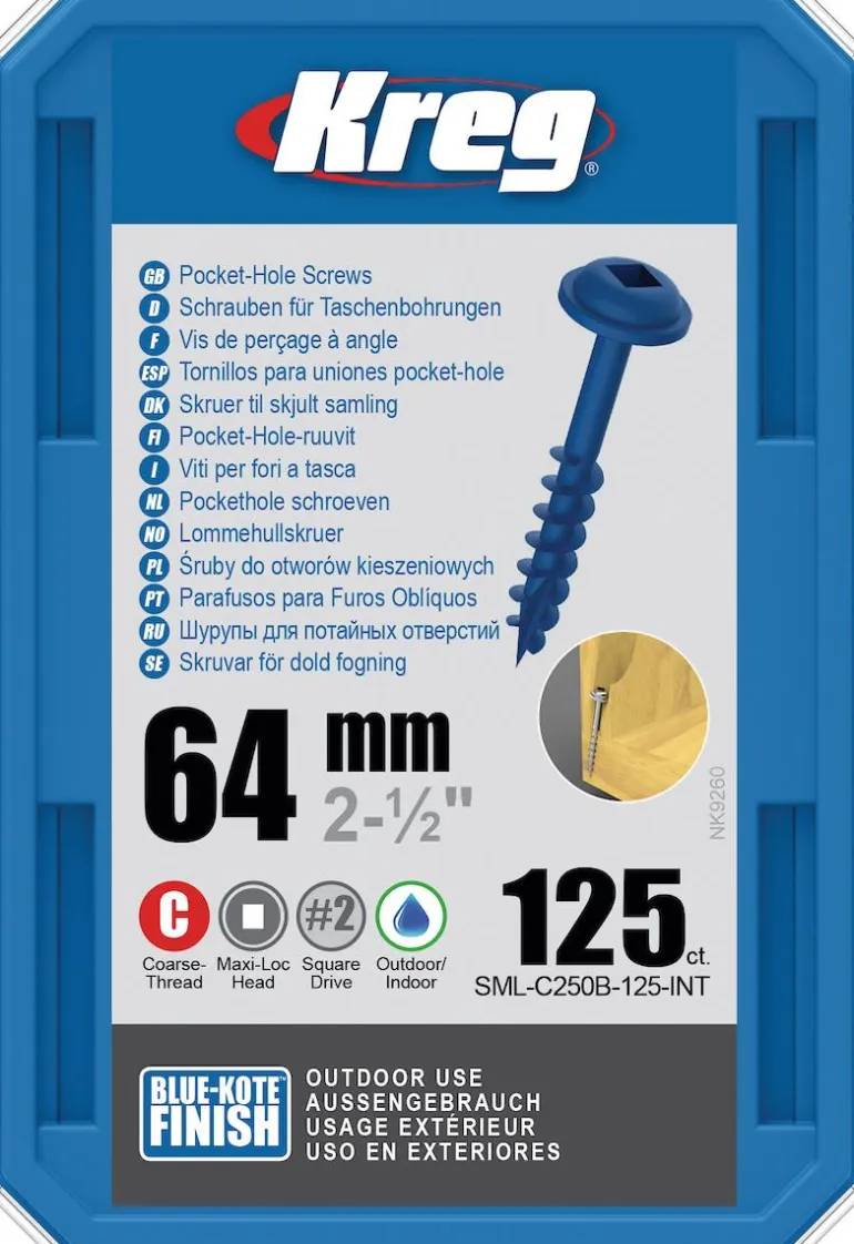 KREGin Blue-Kote-ruuvi on varustettu kolmella korroosiolaakereilla, joka tarjoaa hyvän ruostesuojauksen. Ruuvi soveltuu useisiin sisä- ja ulkoprojekteihin ja siinä on Maxi-Loc-pää sekä karkea profiili.