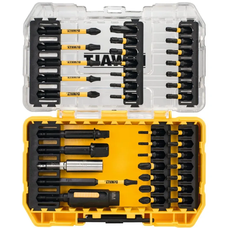 38-osainen EXTREME FLEXTORQ -kärkisarja. Kärjet on suunniteltu kestämään iskevän ruuvinvääntimen suuria voimia. Tämä vähentää virheitä kiinnitettäessä suuria ruuveja. Toimitetaan pienessä säilytyslaatikossa, TSTAK-yhteensopiva.