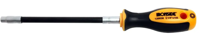 Taipuisa teräskierukkaterä ja 1/4″ kuusikulmahylsy upotetulla magneetilla. Ergonomisesti muotoilu kaksikomponenttikahva jossa vierimisenpysäytin. Kokonaispituus 275 mm.