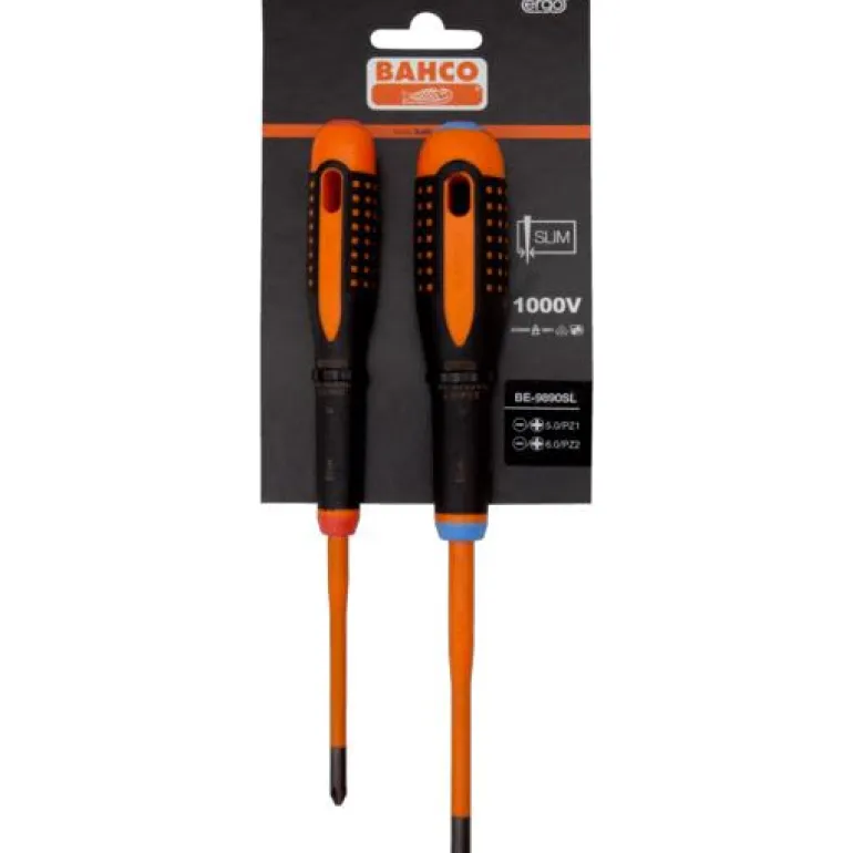 Bahco BE-9890SL on 2-osainen ERGO™ ruuvitalttasarja, jossa eristetyt ja kapeat taltat sähkökaappikäyttöön yms.