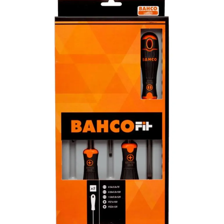 5-osainen ruuvimeisselisarja, johon sisältyy 2 kpl PZ ristipäisiä ruuvimeisseleitä ja 3 kpl uraruuvimeisseleitä.
