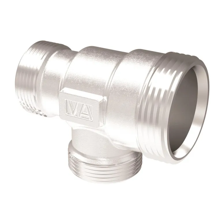 Kromattu T-putken muotoinen ruuviosa, mitat 12x15x15 mm. Voidaan yhdistää Vatetten järjestelmän muihin ruuviosiin, kaksoismuttereihin ja palloventtiilien osiin räätälöidyn seinäjakelijan luomiseksi. Vatette V6 -järjestelmän osa, jolla saa automaattisesti 60 k/k.