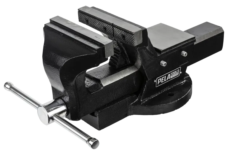 PELA 506553 on laadukas ruuvipenkki (ruuvipuristin) karkaistuilla ja uritetuilla leuoilla sekä neliskulmaisella kiskolla. Musta vasaralakattu viimeistely. Kiinteä kiinnitys työpöytään.