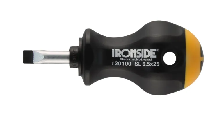 Pyöreä niklattu 25 mm:n terä erikoiskarkaistua kromimolybdeenivanadiiniterästä. Mustattu kärki lisää tarkkuutta ja kestävyyttä. Ergonomisesti muotoiltu PVC-materiaalista valmistettu kiertymätön varsi.