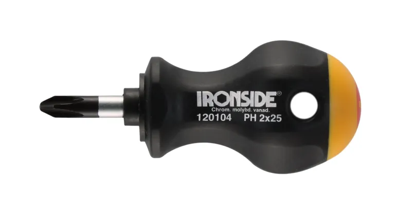 Pyöreä niklattu 25 mm:n terä erikoiskarkaistua kromimolybdeenivanadiiniterästä. Mustattu kärki lisää tarkkuutta ja kestävyyttä. Ergonomisesti muotoiltu PVC-materiaalista valmistettu kiertymätön varsi. Phillips-ristiurille.