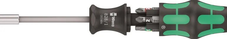 828/1 Bits-ruuvitalttakahva vahvalla kestomagneetilla; kahvassa 6 Bits-kärjen lipas, 1/4″