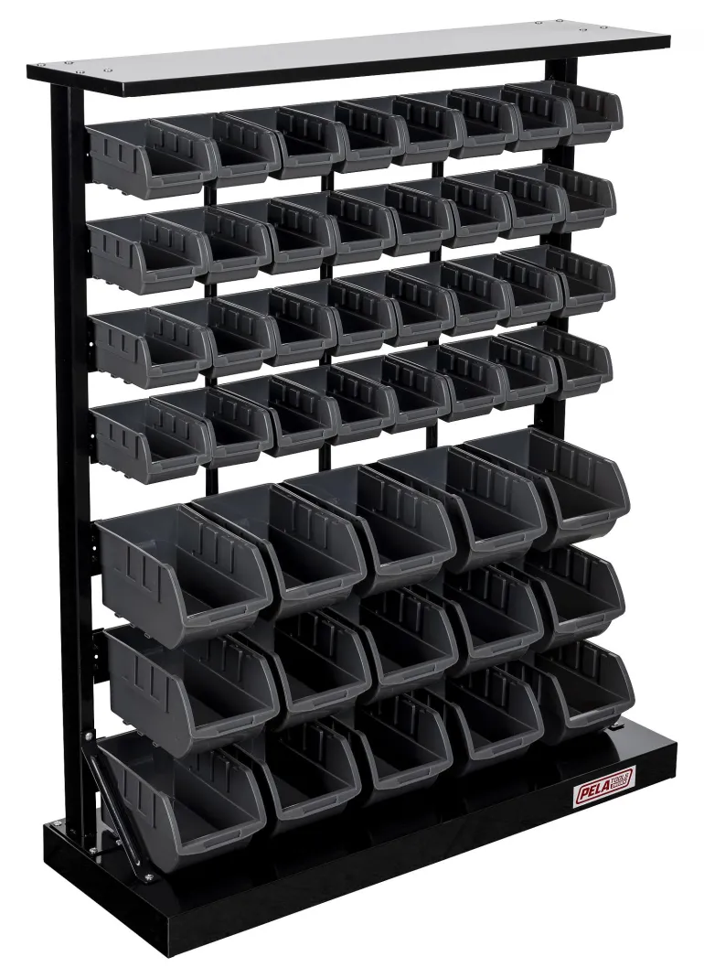 Pela 532213 on ruuvi-/laatikkoteline (tarvikehylly) sisältäen 47 kappaletta muovilaatikoita kahdessa eri koossa. Soveltuu hyvin pulttien, muttereiden, ruuvien ja muiden pientarvikkeiden säilytykseen. Säilytyslaatikot ovat irrotettavissa telineen seitsemästä ripustinkiskosta.