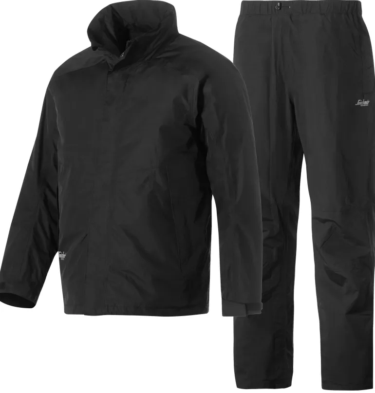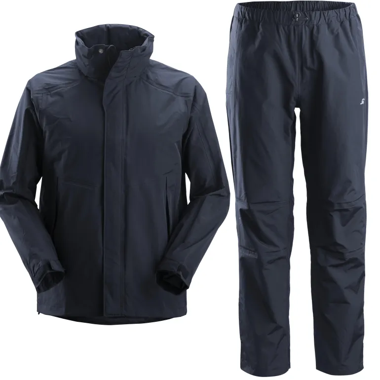 Kevyt sadetakki ja housut, joissa on yksinkertainen päällevedettävä malli. Takissa on teipatut saumat vedenpitävään suojaan, säädettävä huppu on luotettava suoja ja istuu täydellisesti.