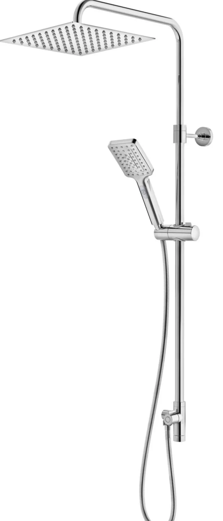 Sadesuihkusetti erittäin ohuella suihkulautasella. Easy clean -suihkusuuttimet mahdollistavat kalkkijäämien helpon puhdistamisen. Yläsuihku ja suihkuvarsi ovat käännettäviä ja erikseen säädettäviä, 400 mm pituinen suihkuvarsi. Joustava seinäkiinnike 50-130 mm helppoon asennukseen. 3-toimintoinen käsisuihku painikkeella. Voidaan asentaa ruuveilla tai liimalla. Sopii kaikkiin suihkuhanoihin, joissa on ½”suihkuliitäntä ylöspäin.