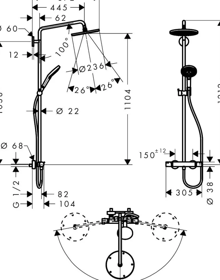 Yläsuihkun varren pituus: 430 mm