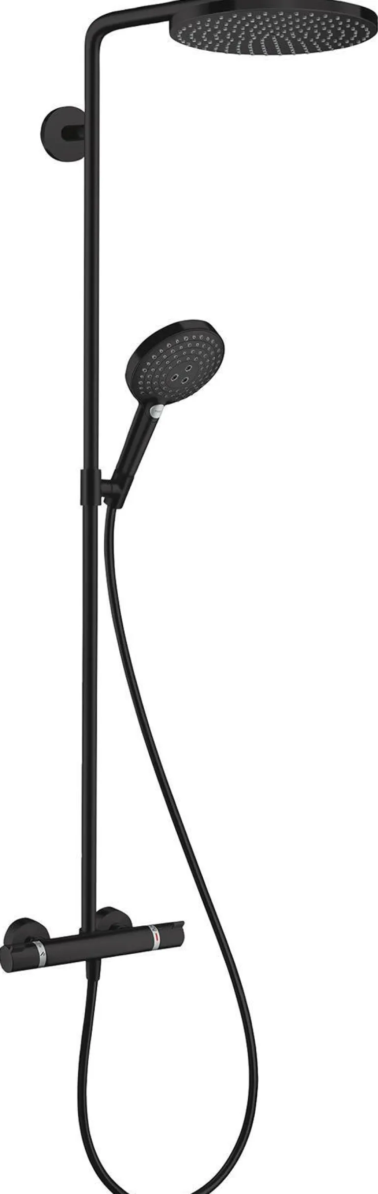 Mattamusta sadesuihkusetti 150 cc, jossa yläsuihku, käsisuihku, suihkuhana, suihkutanko, suihkuletku ja liukusäädin. Messinkiä. Virtaama 16 l/min ja turvapysäytystoiminto 40 °C:ssa.