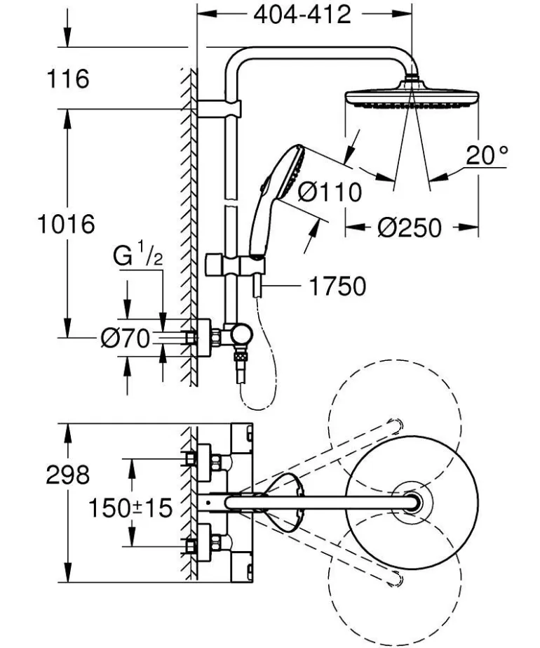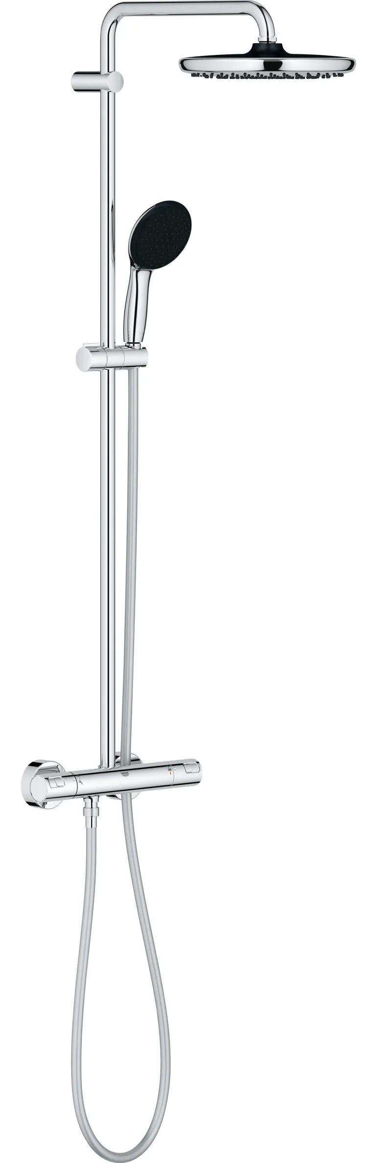 Grohe TurboStat -tekniikan ansiosta järjestelmä ylläpitää tasaista lämpötilaa ilman epämiellyttäviä yllätyksiä. Grohe Water Saving -tekniikka vähentää merkittävästi veden- ja energiankulutusta suorituskyvystä tinkimättä. Turvallisuuden lisäämiseksi Grohe SafeStop -painike on asetettu 38 °C:seen, jotta erityisesti lapset eivät vahingossa nosta veden lämpötilaa liikaa. Lisäturvaominaisuutena valinnainen Grohe SafeStop Plus -rajoitin voidaan asettaa 43 °C:seen. Vaihda ylä- ja käsisuihkun välillä ja säädä veden virtausta yhdellä kädellä AquaDimmer -toiminnolla. Kestävä ja helppohoitoinen Grohe Long-Life -pintakäsittely varmistaa, että järjestelmä säilyttää tyylikkään viimeistelynsä vuosien ajan. Grohe QuickSpannerin ansiosta termostaattihana voidaan helposti asentaa ilman lisätyökaluja.