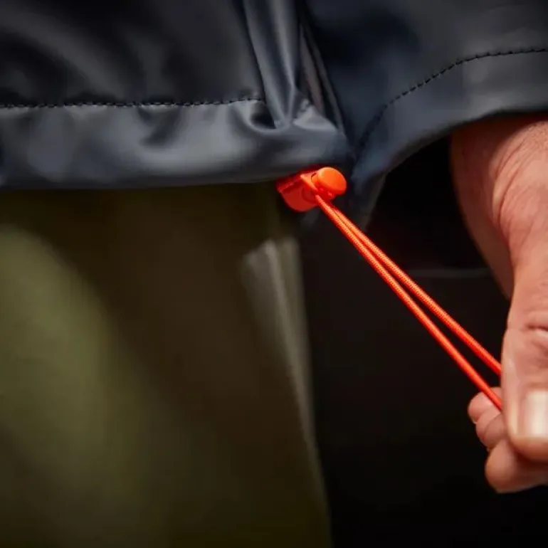 Laivastonsininen tuulitakki, joka asettaa uuden standardin sadevaatteille, suunniteltu ulkokäyttöön kaikissa sääolosuhteissa. Valmistettu ftalaatittomista materiaaleista, jotka ovat ympäristöystävällisiä ja pitävät sinut kuivana ja mukavana kaikissa sääolosuhteissa.
