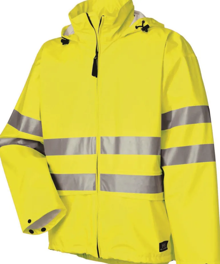 H/H Workwear Narvik on keltainen sadetakki, huomioluokka 3 ja 3M-heijastimet rinnassa ja hihoissa. Takissa on kaksi kannellista etutaskua ja piilotettu huppu, jossa on kiristysnyörit. Mukava sadetakki, jossa on painonappikiinnitys hihansuissa. ja kiristysnyörisäätö alareunassa takaa hyvän istuvuuden. Erittäin pitkä selkäosa suojaa vedolta. Saatavissa eri kokoina.