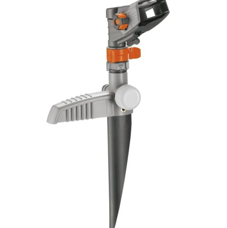Piikillä varustettu sadetin, joka kiinnitetään turvallisesti nurmikkoon piikillä ja jota voidaan helposti siirtää paikasta toiseen. Varustettu Gardena-järjestelmäliittimellä ja päätytulpalla.